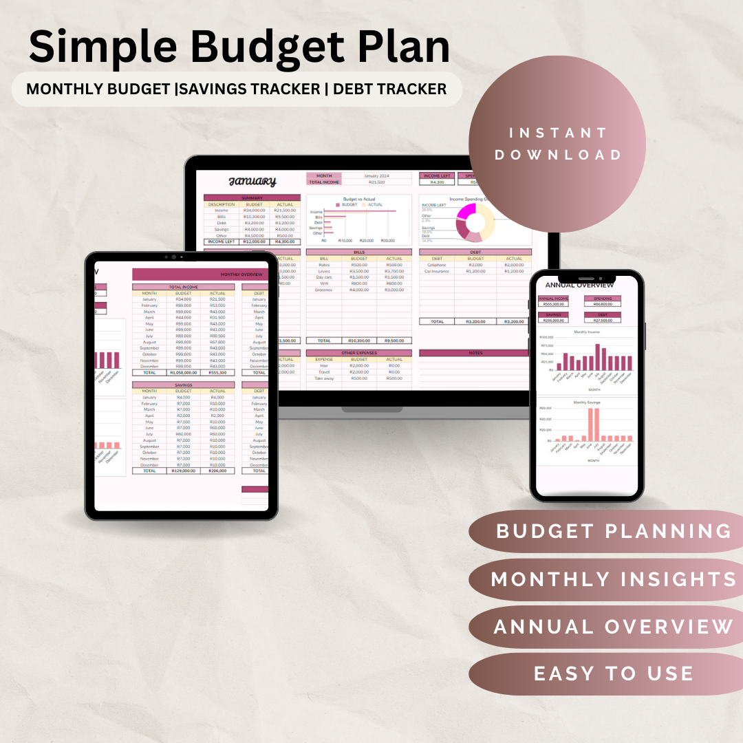 ✔ Simple Budget Plan – A user-friendly monthly and annual tracker to manage your money effortlessly.